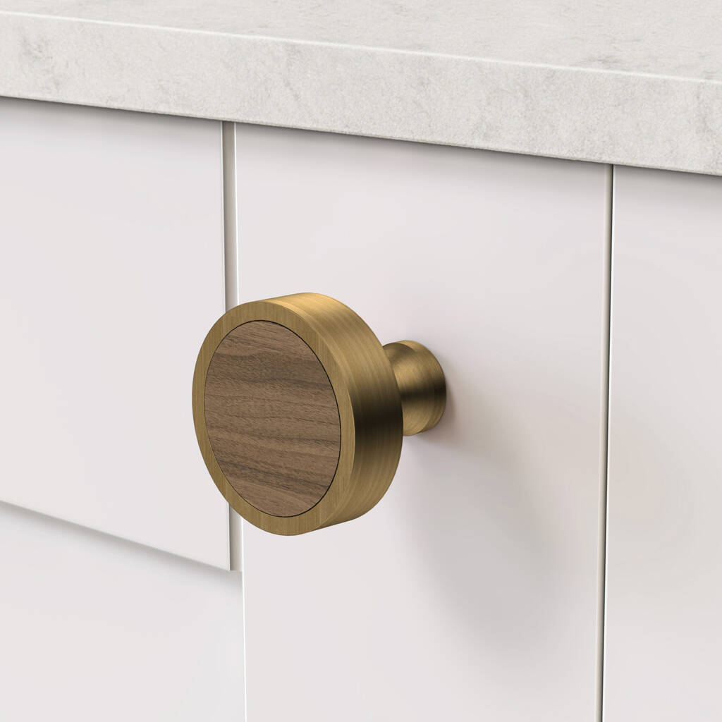 Solid Brass Antique Gold Cabinet Knob With Wood Insert