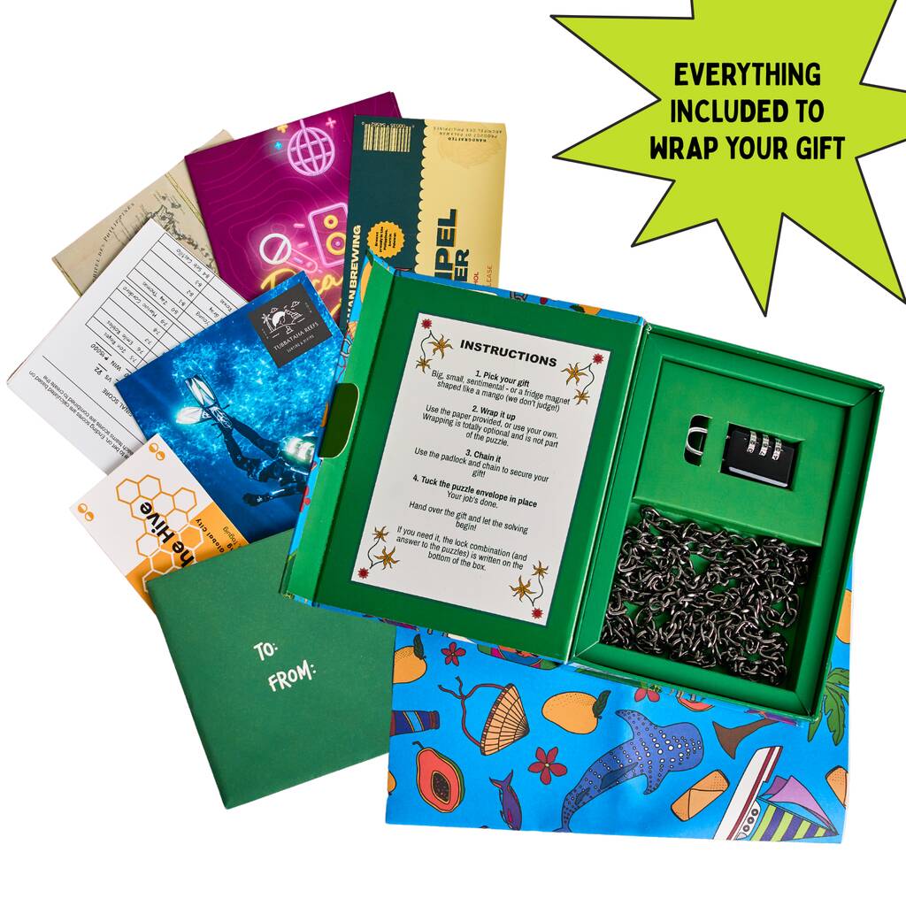 It’s the perfect way to turn your gift into an unforgettable experience - part escape room, part present, and way more fun than just wrapping paper!