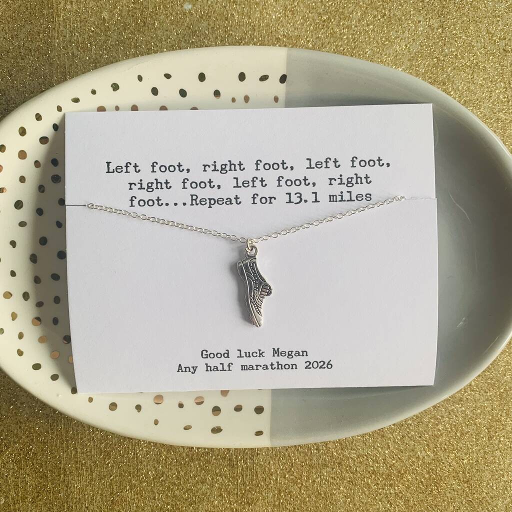 Half Marathon Necklace With Trainer Charm Personalised Gift