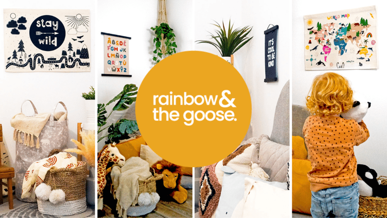 We design our wall hangings and prints in house at Rainbow and the goose, completely unique to us.