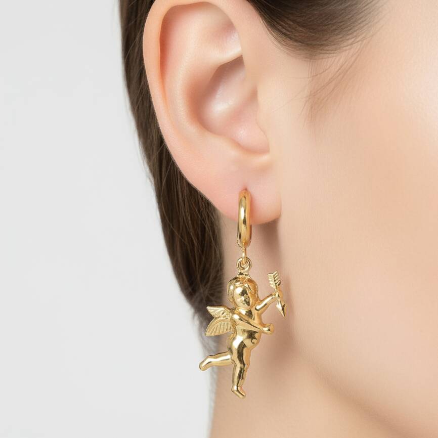 These gold cherub huggie earrings are perfect for adding a touch of character to your everyday style.