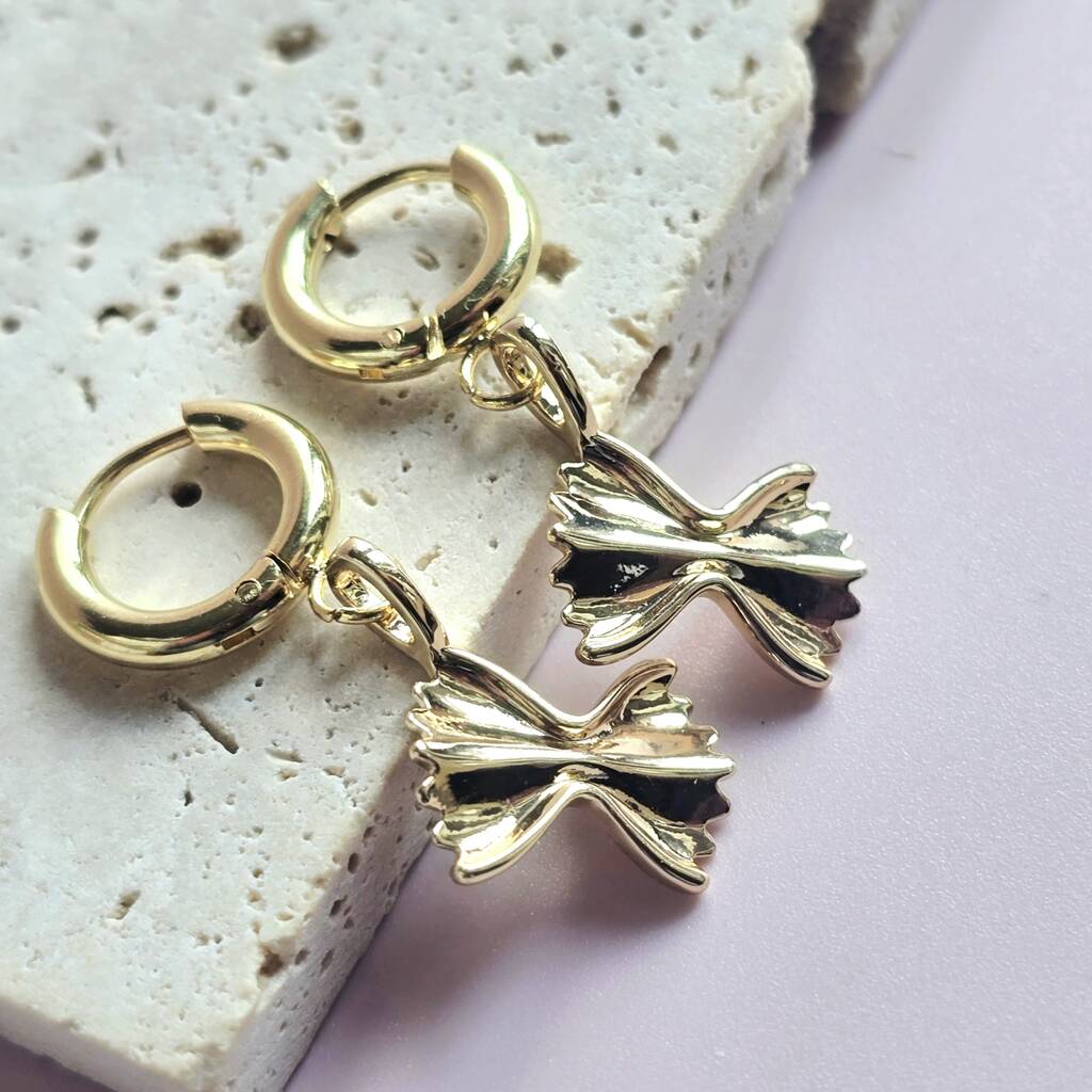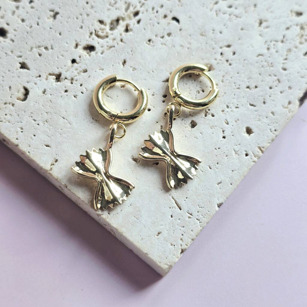 Farfalle Pasta Huggie Hoop Earrings Gold Plated