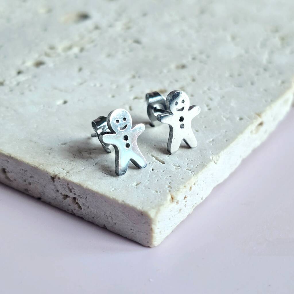 Gingerbread Man Festive Stud Earrings Gold Or Silver Tone