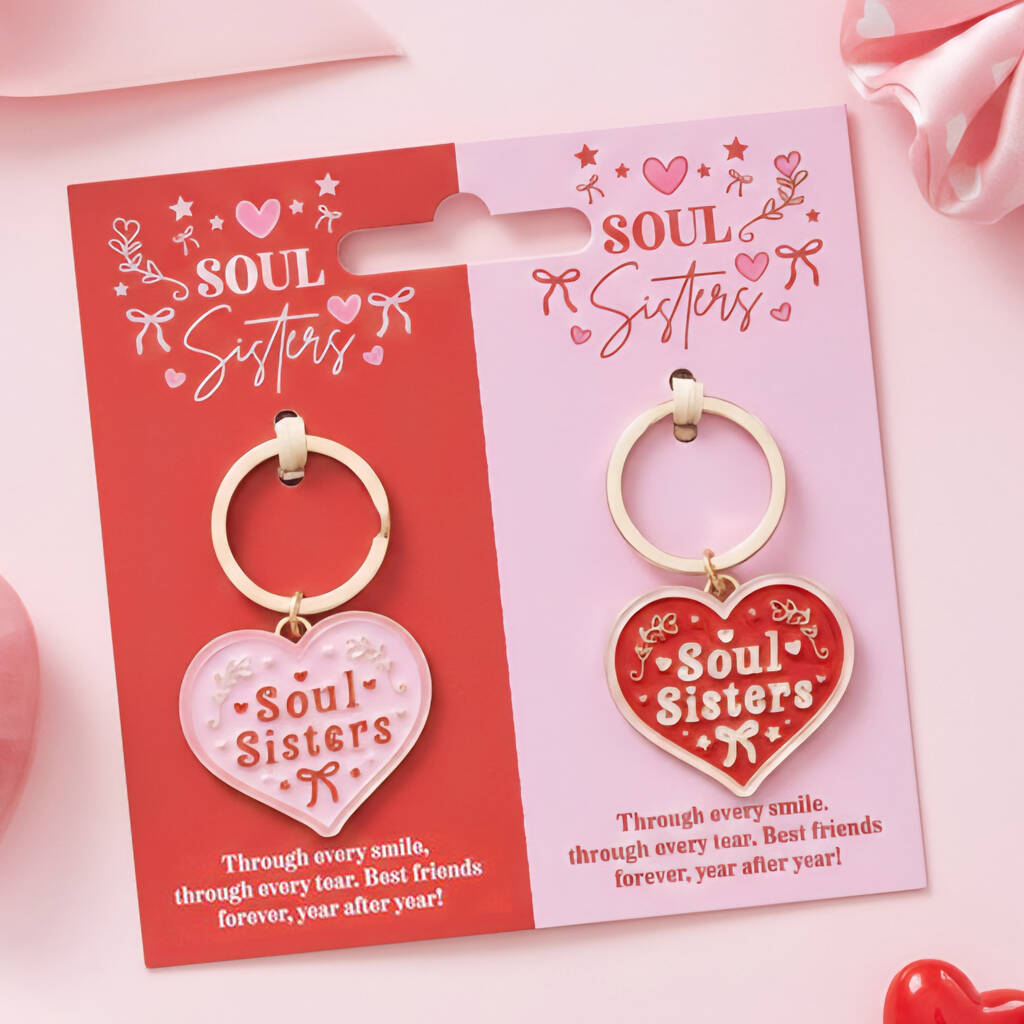 Soul Sisters Heart Best Friends Keyring Or Bag Charm Set