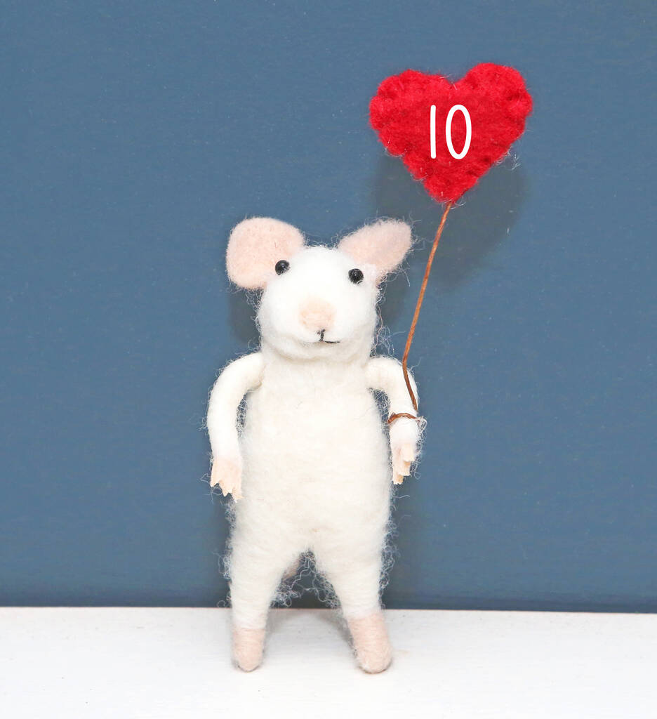 Felt Mouse With Love Heart, 10th Birthday Gift