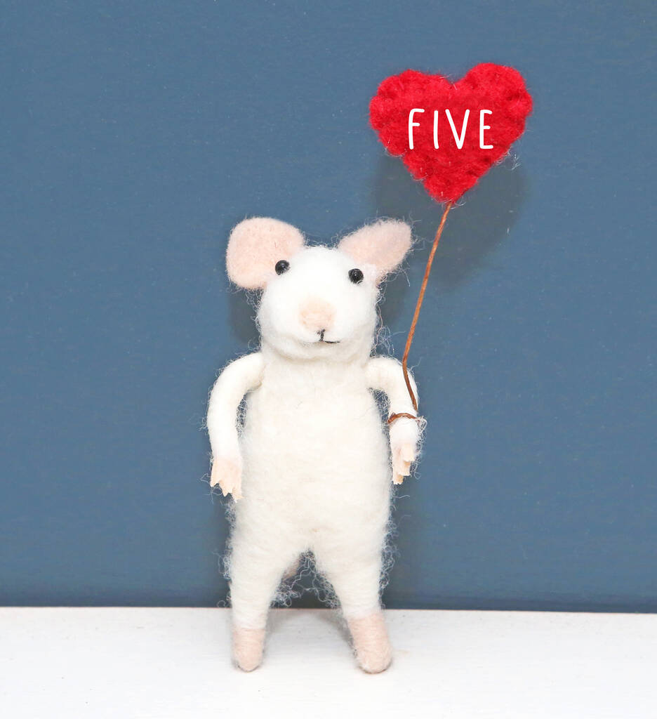 Felt Mouse With Love Heart, 5th Birthday Gift