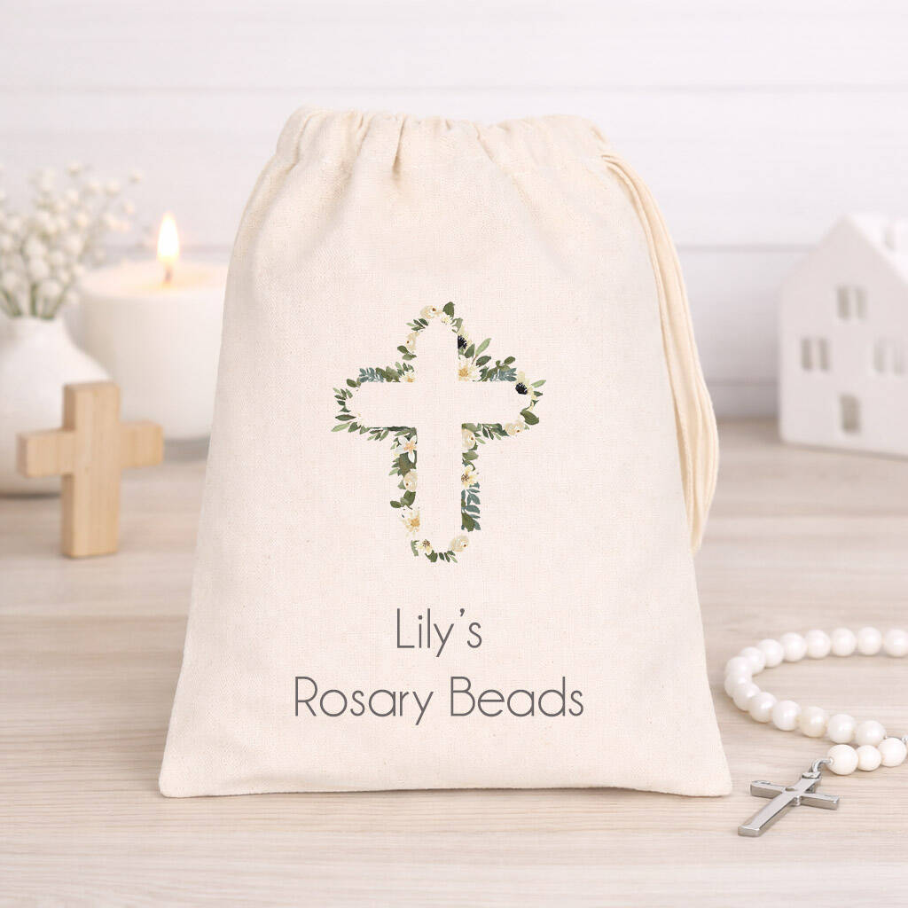 Personalised Cotton Communion Rosary Keepsake Bag, Baptism