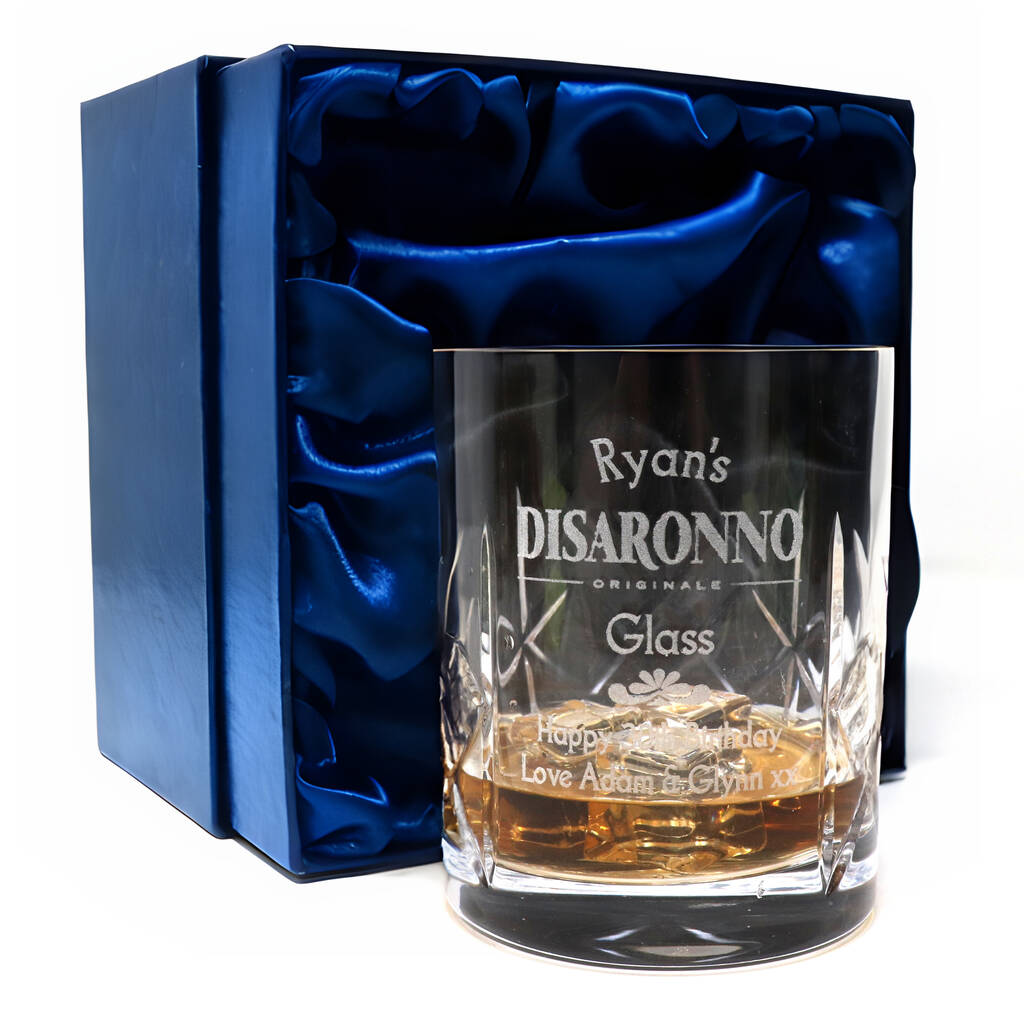 Personalised Disaronno Design Crystal Glass Tumbler In Silk Gift Box