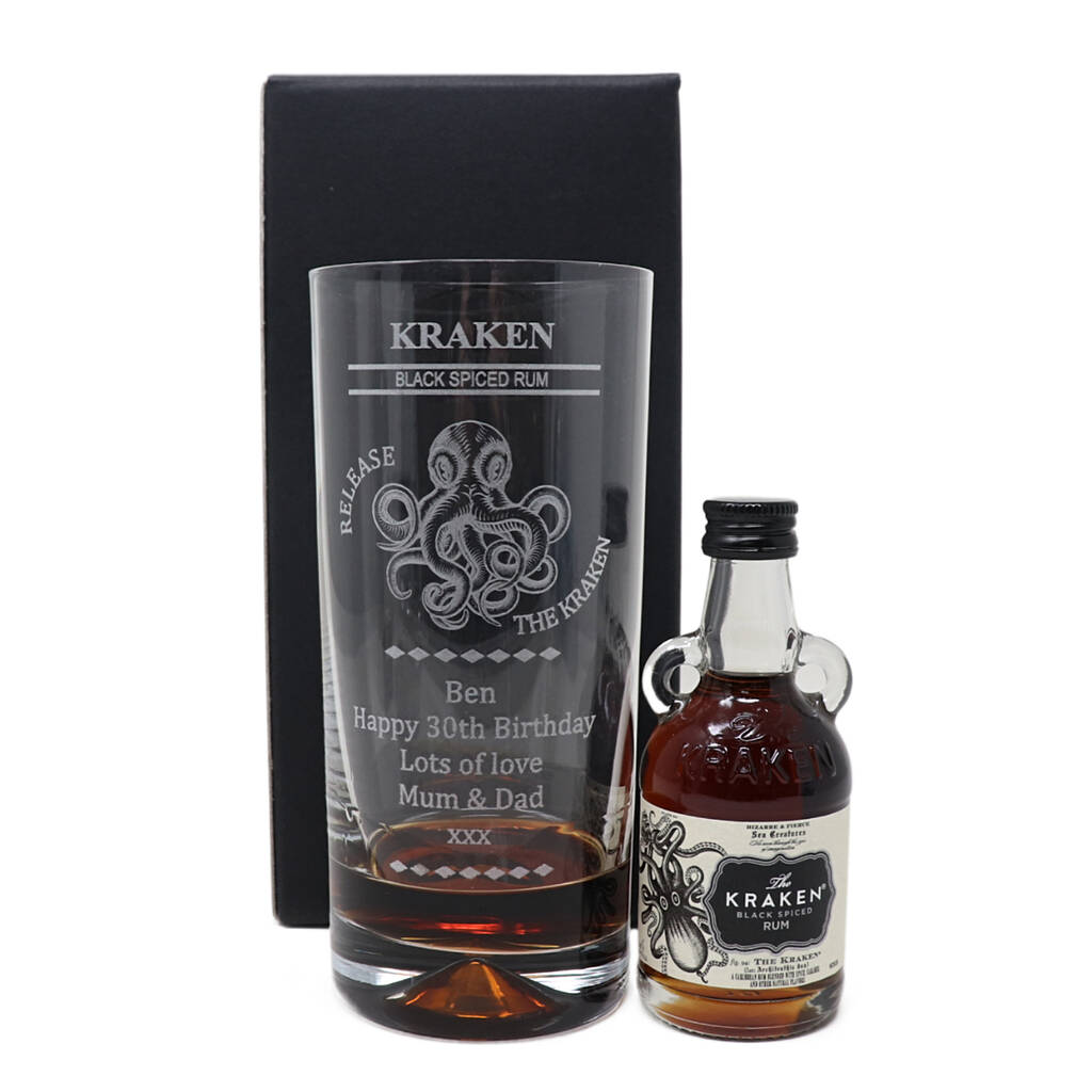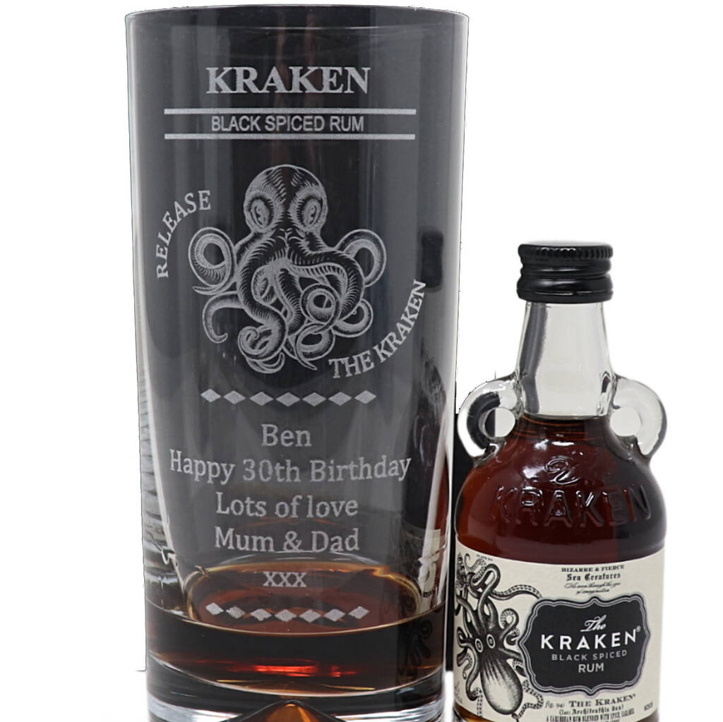 Personalised Kraken Rum Highball Glass And 5cl Kraken