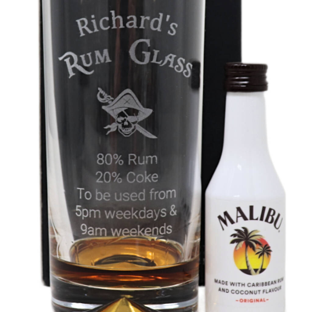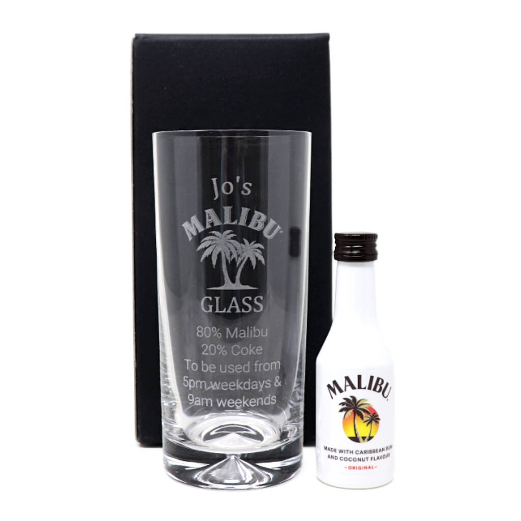Personalised Malibu % Design Highball Glass And 5cl Malibu