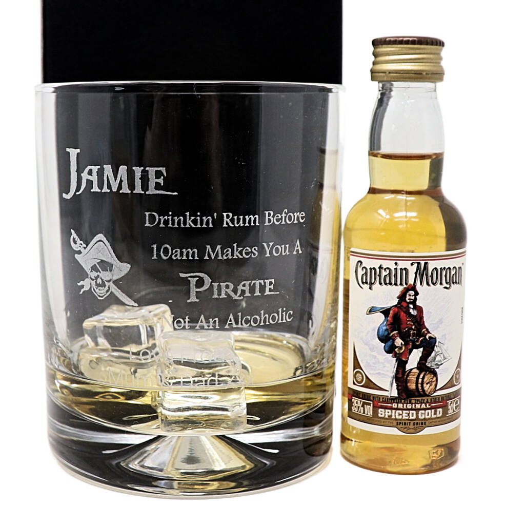 Personalised Pirate Rum Design Glass Tumbler And 5cl Miniature Captain Morgan Spiced Rum