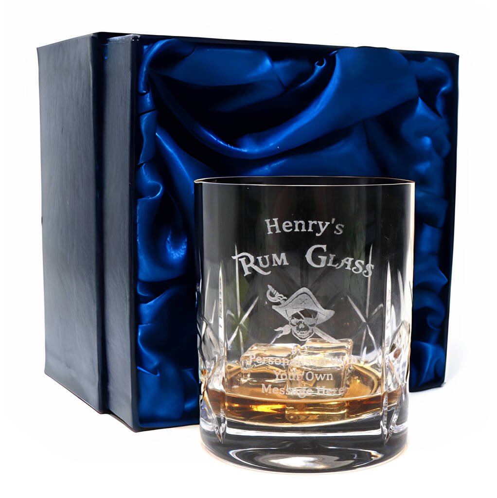 Personalised Rum Design Crystal Glass Tumbler In Silk Gift Box