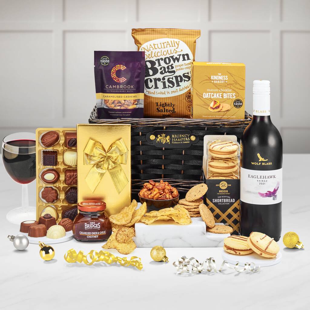 Our Christmas Cheer Hamper With Red Wine arrives in a charming woven basket packed with a fine selection of seasonal delights for Christmas.
