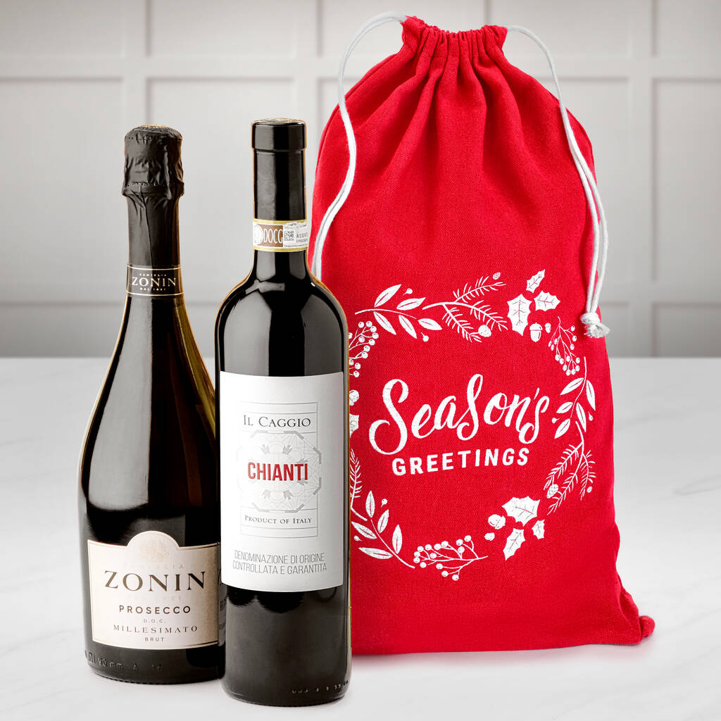 This elegant Italian Wine Duo contains two bottles of the finest Italian wine including a sparkling Prosecco and a full-bodied red.