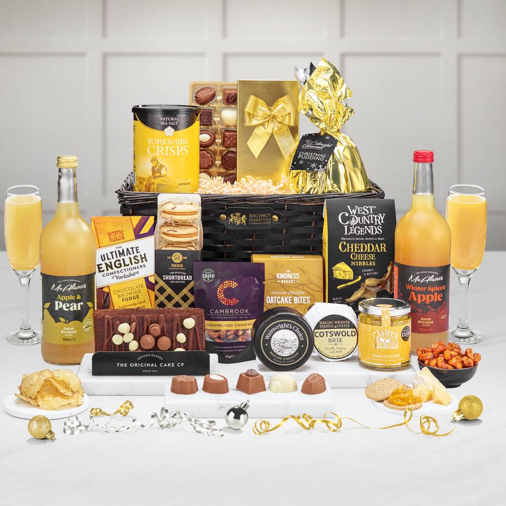 The contents of this hamper may include: tree nuts, peanuts, sesame, milk, soya, mustard, barley, wheat, gluten, dairy, egg, sulphur dioxide/sulphites, sodium dioxide.