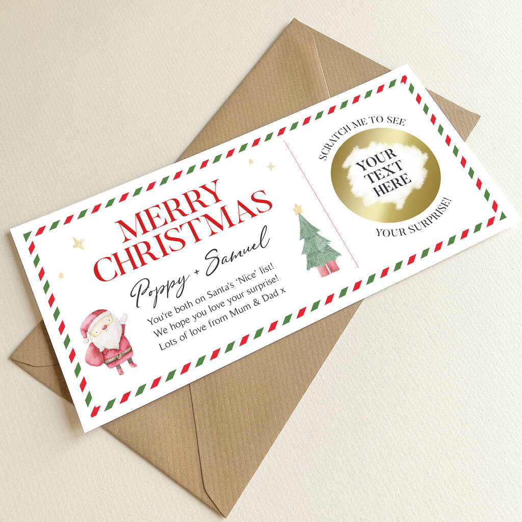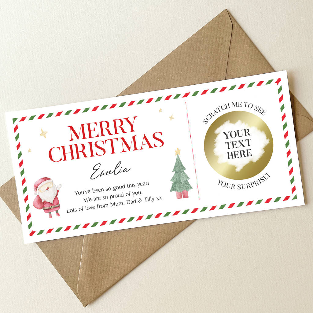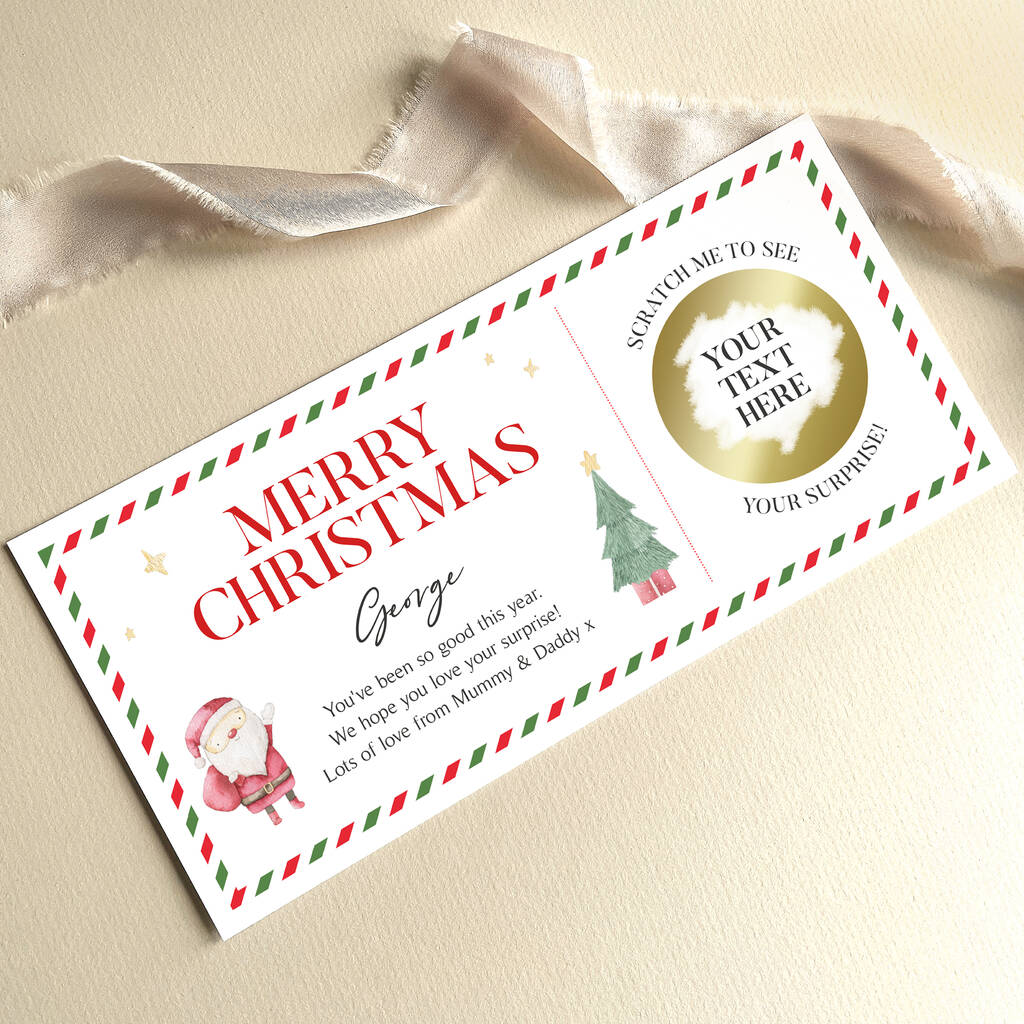 Personalised Christmas Scratch To Reveal Gift Voucher: Santa And Christmas Tree