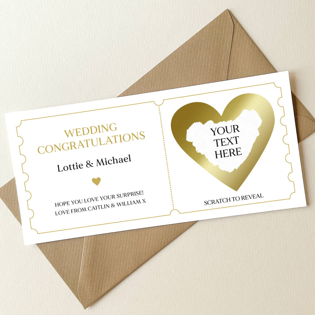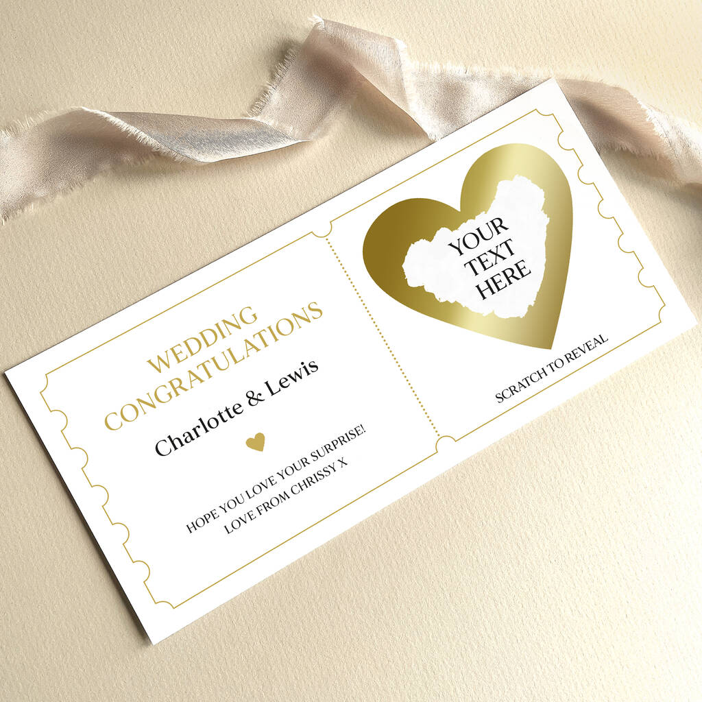 Personalised Wedding Gift Scratch To Reveal Card: Gold Heart Design
