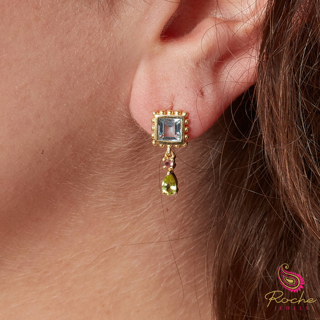 Blue Topaz, Tourmaline And Peridot Stud Drop Earrings