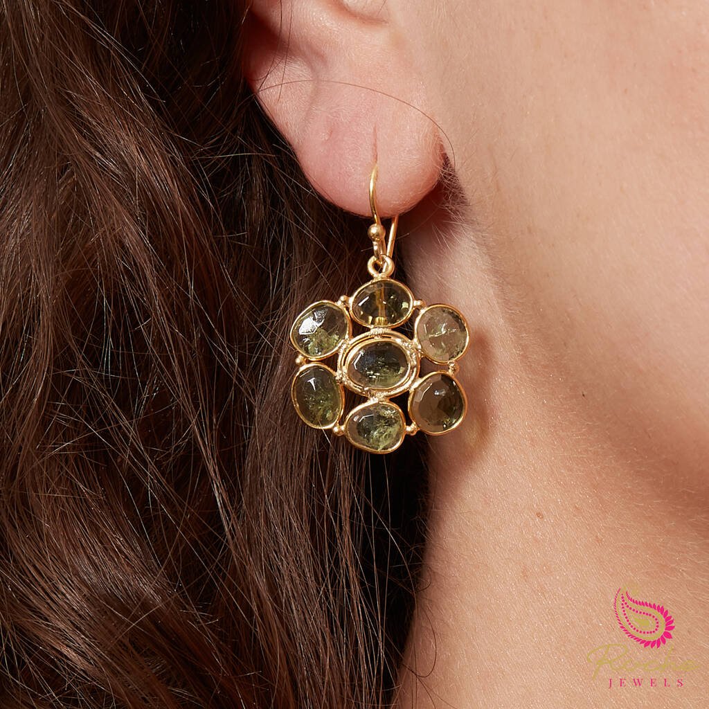 Green Peridot Cluster Circle 18k Gold Plated Hook Earrings