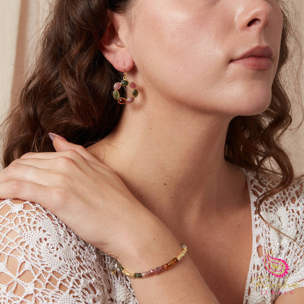 Multicoloured Tourmaline Circle Hook Earrings 18 K Gold Plated