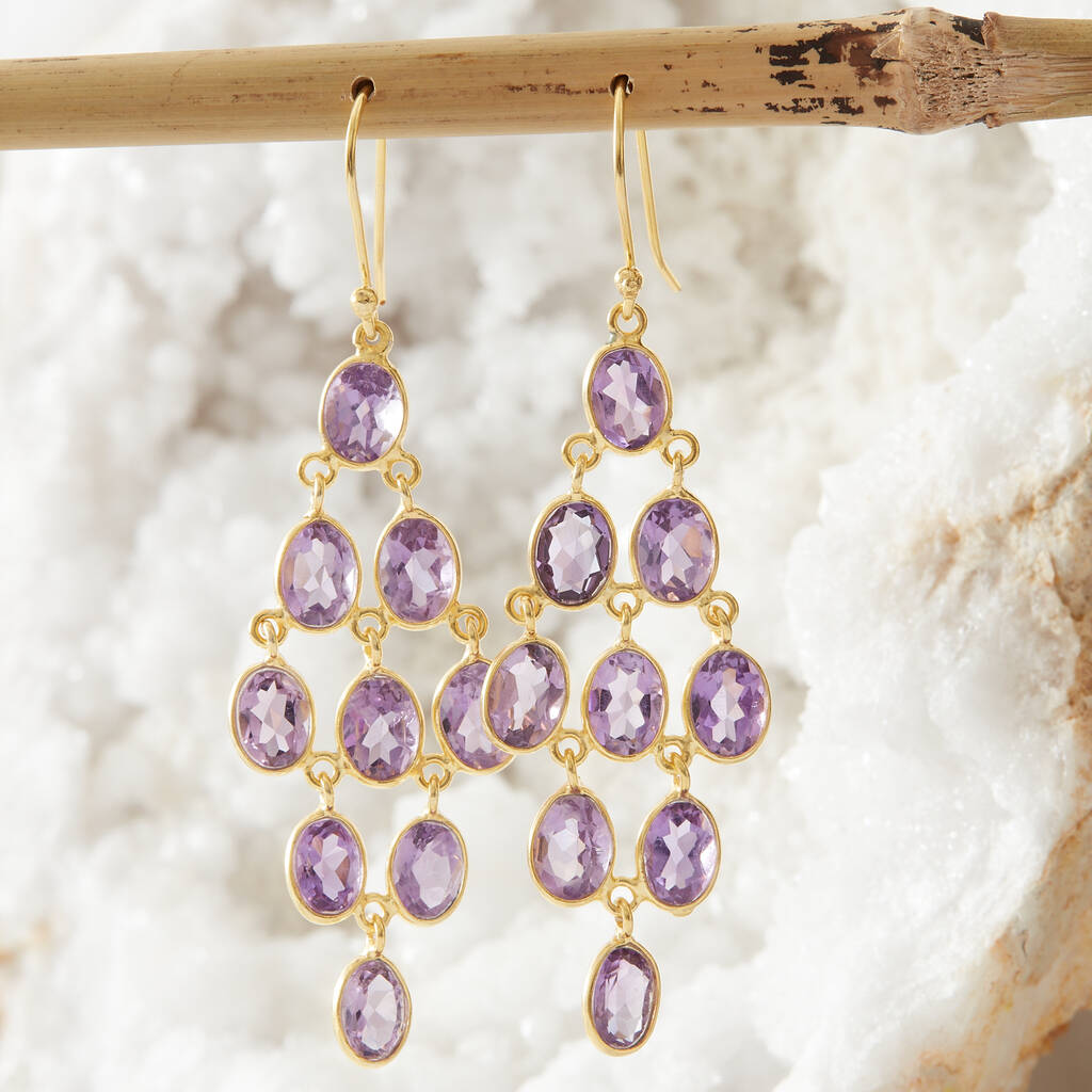 Purple Amethyst Chandelier 18k Gold And Silver Earrings
