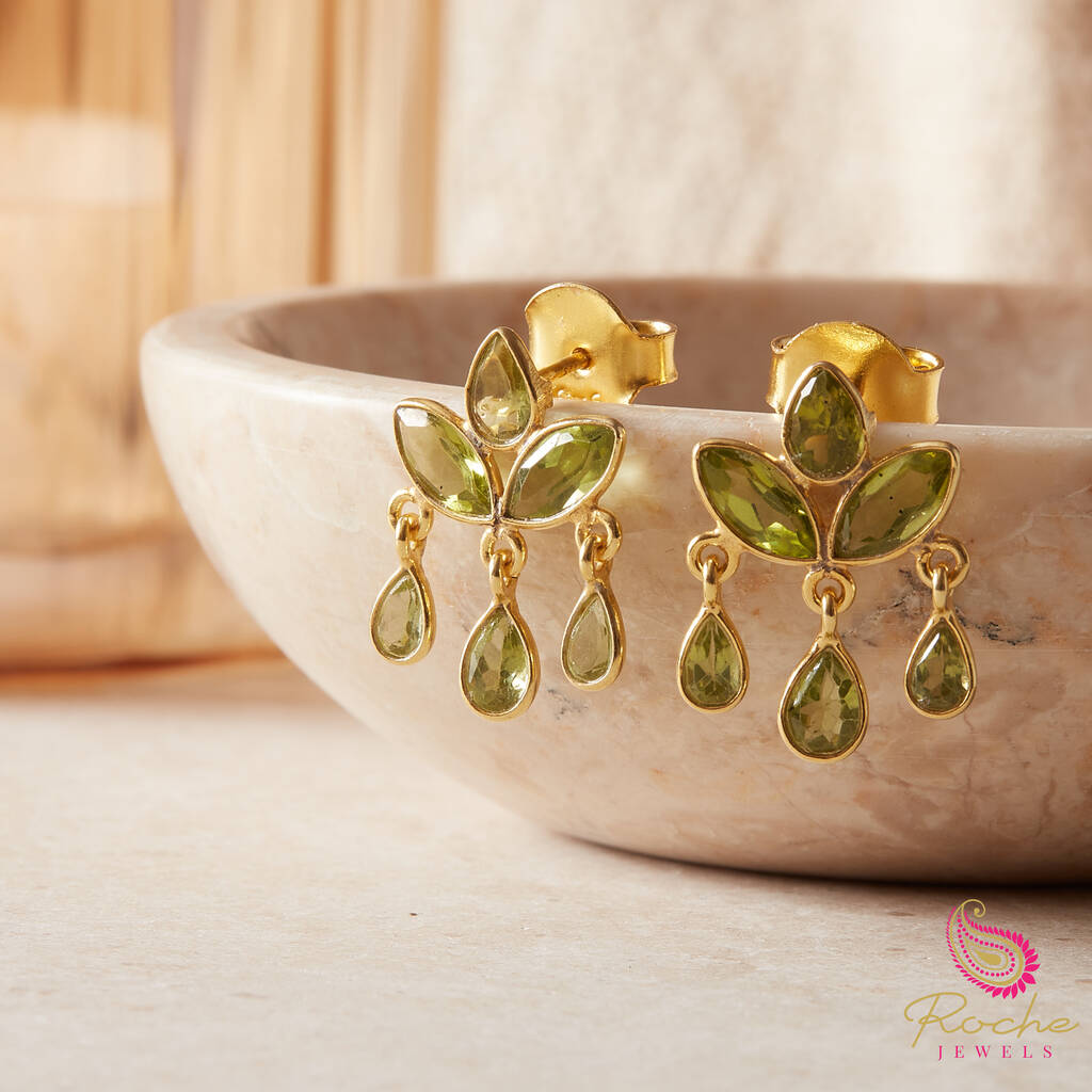 Red Garnet Lotus Flower Stud Drop Earrings