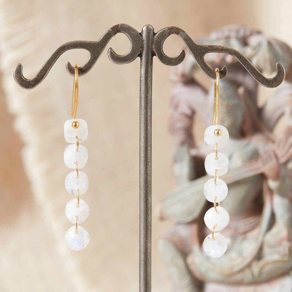 White Moonstone Five Pebble Drop Earrings