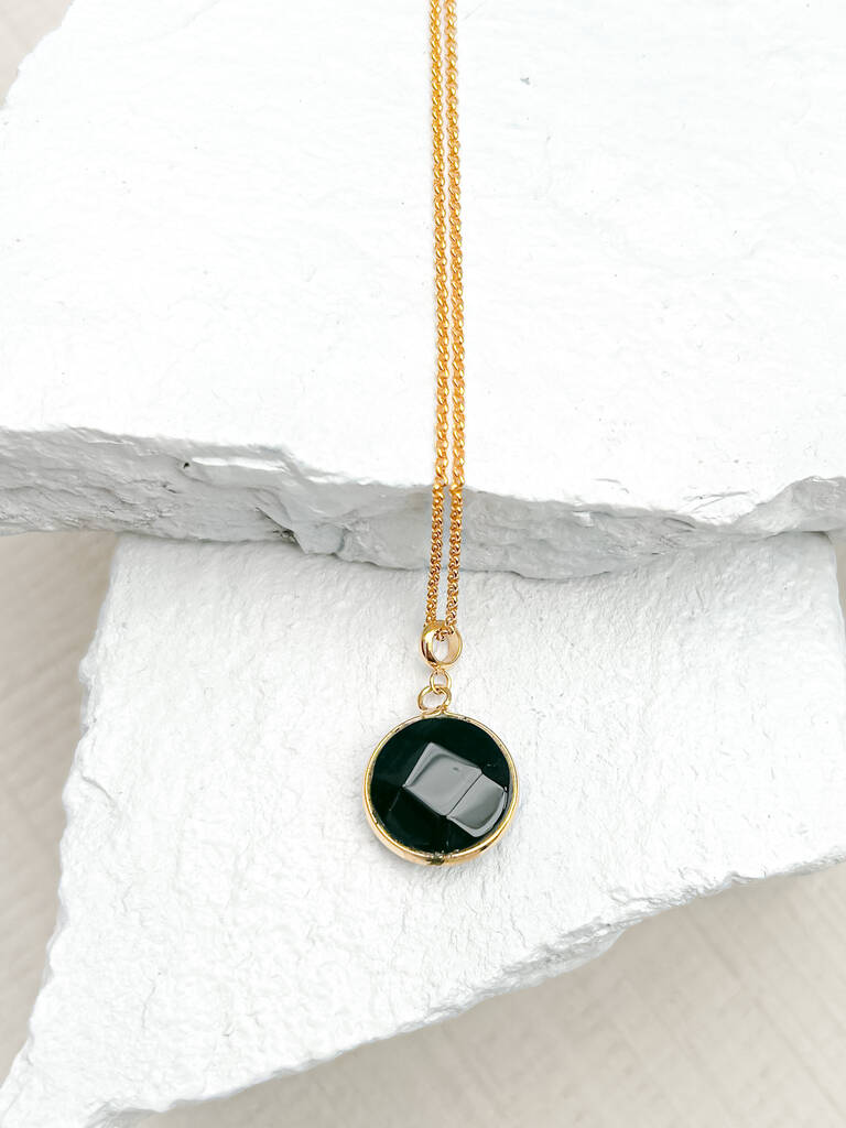 Agate Round Black Real 18k Gold Plated Necklace