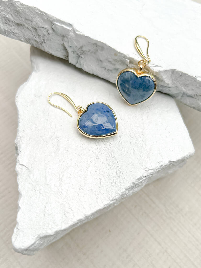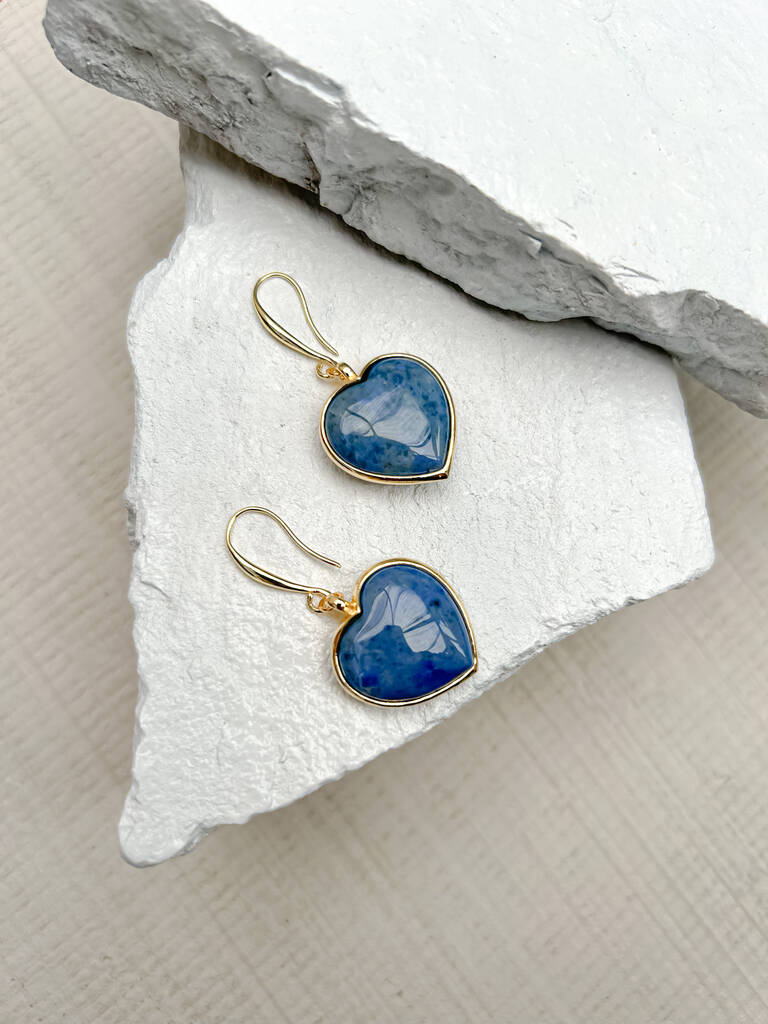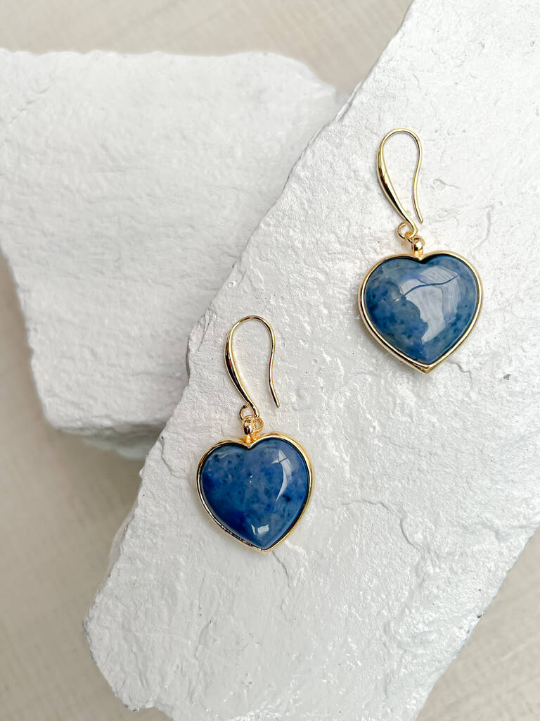 Dumortierite Puff Heart Gold Plated Earrings