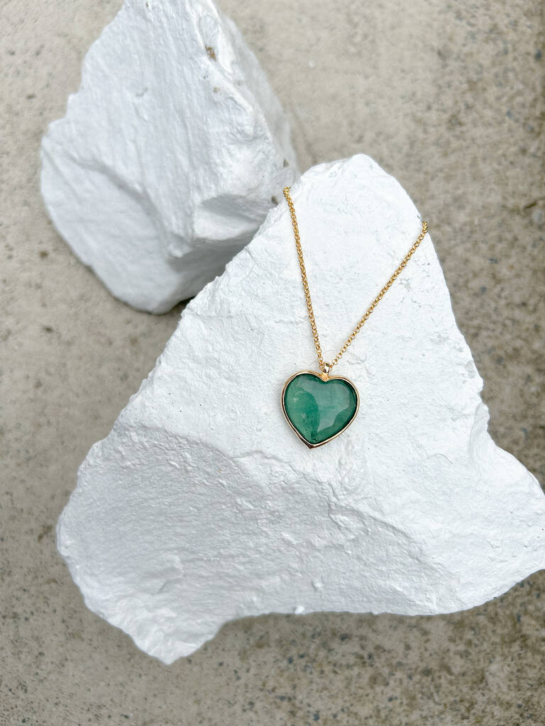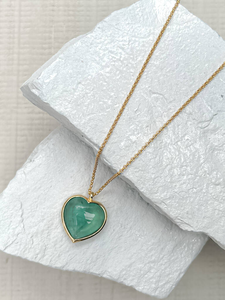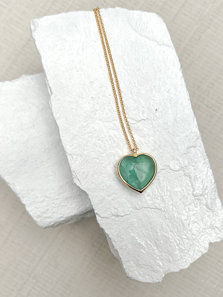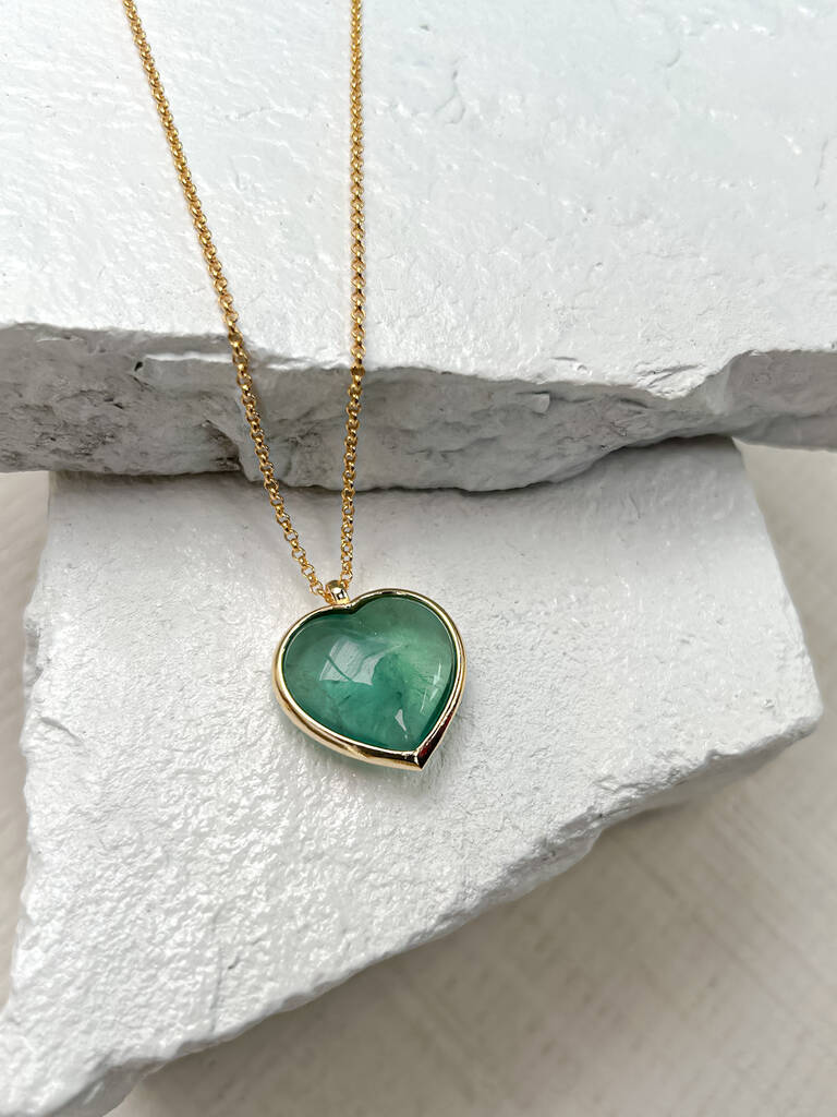 Fluorite Puff Heart Gold Plated Necklace
