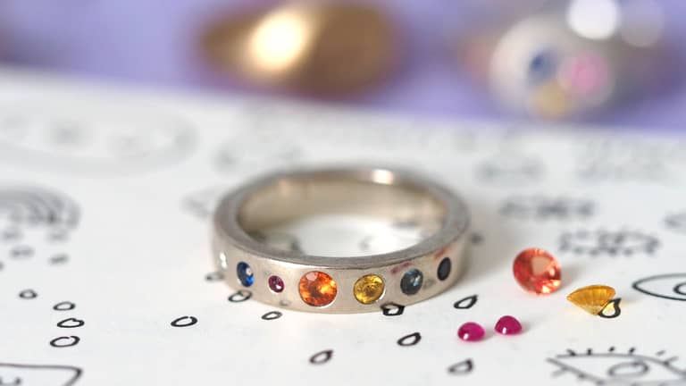I work in precious materials including silver, gold and precious stones, laser cut wood and acrylic and design enamel pins.