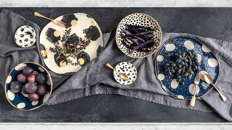 I make whimsical slab built ceramics, which are hand painted and embellished with gold.