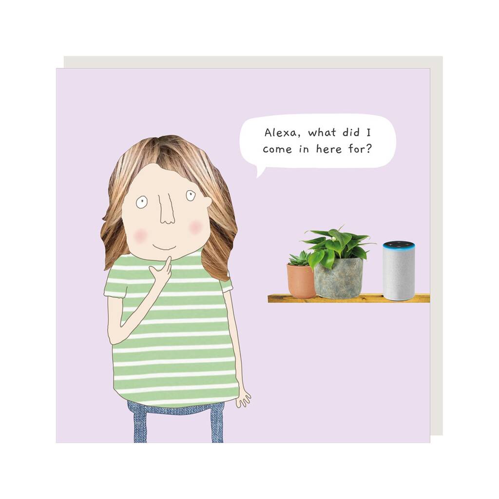 A birthday card for her that pokes fun of the memory issues we all face at some point...thank goodness for Alexa!