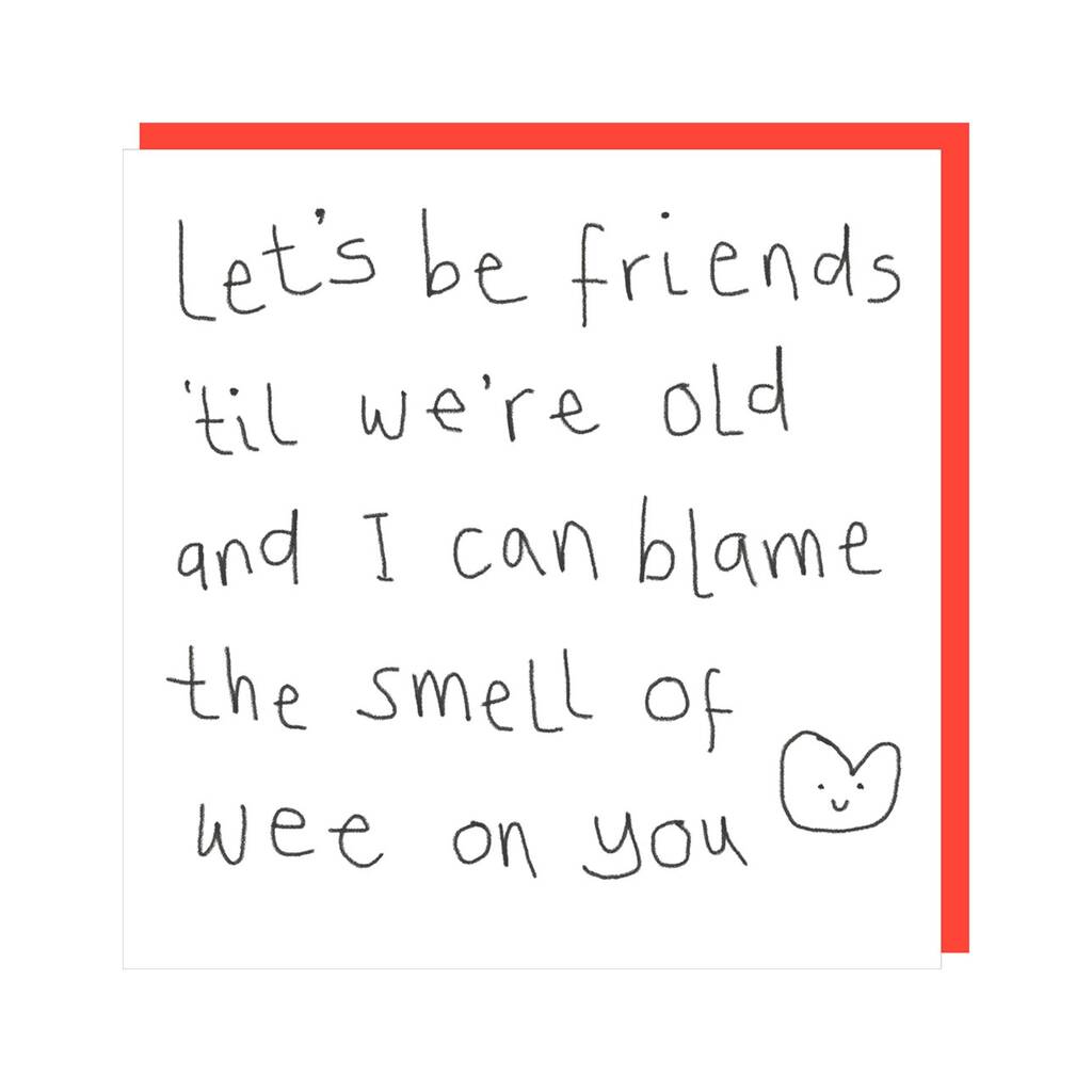 'Let's be friends 'til we're old and I can blame the smell of wee on you'.