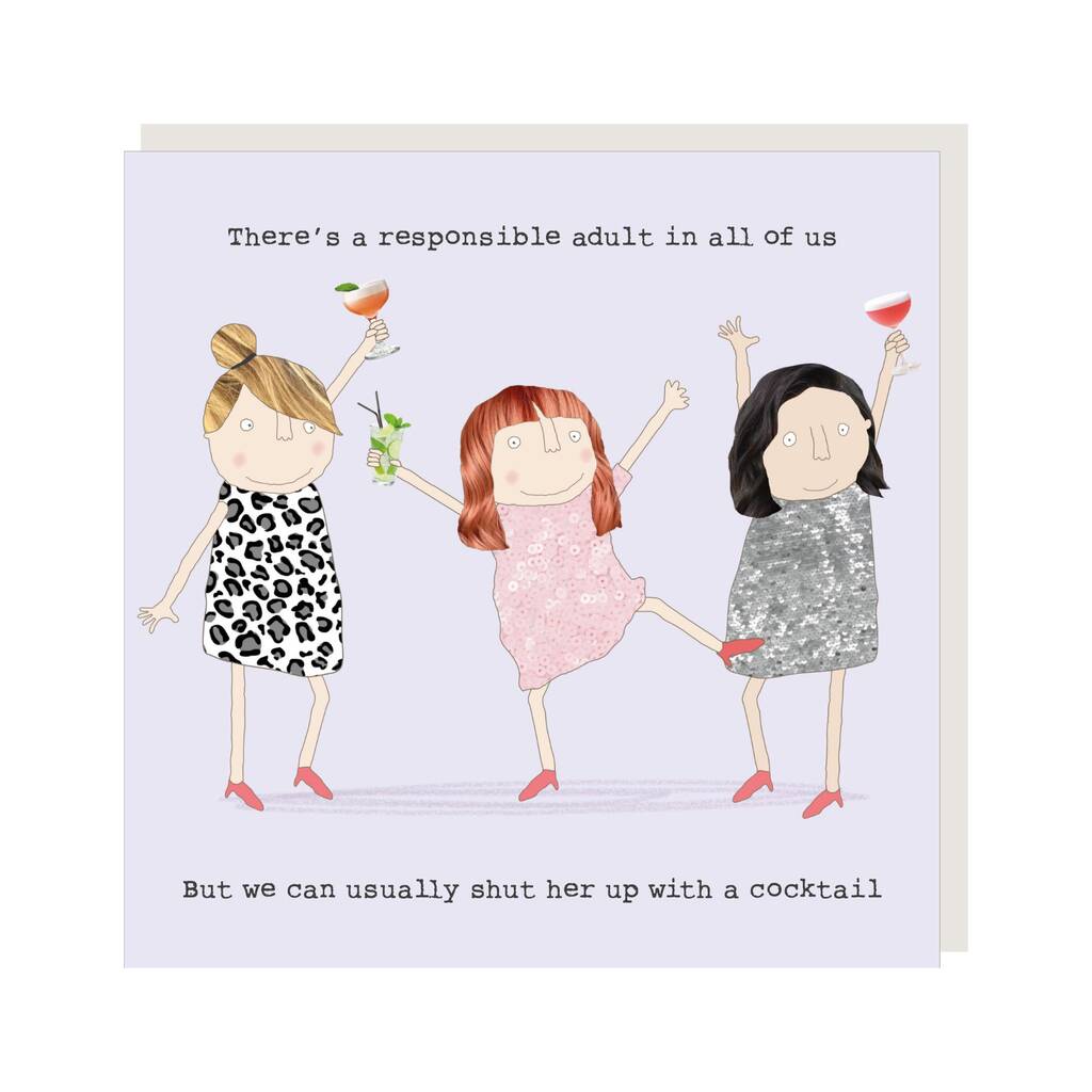Funny card for party girls! 'There's a responsible adult in all of us. But we can usually shut her up with a cocktail.'
