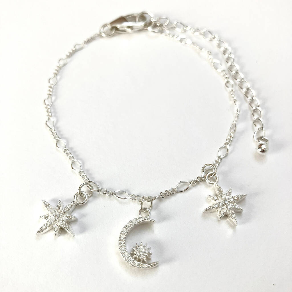 Sterling Silver Cubic Zirconia Sun, Moon And North Star Charm Bracelet: Jewellery Set Available