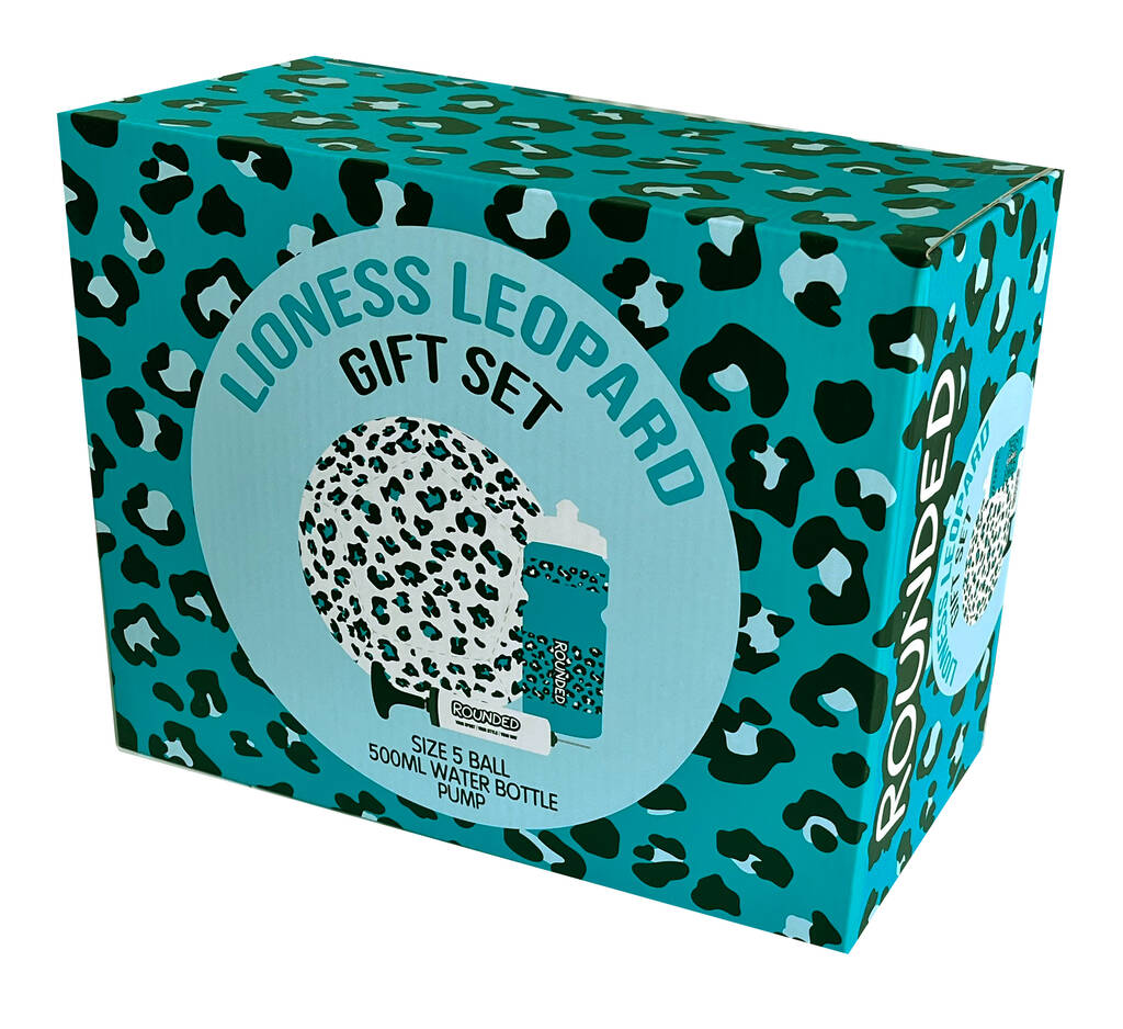 Each kit inlcludes a size 5 football, leopard print water bottle and pump. All she needs to train, play and start to roar on the pitch.
