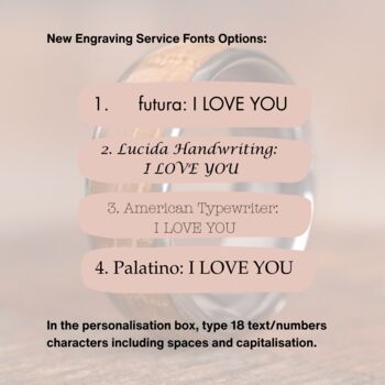 In the personalisation box you should tell us the font and message you want to be engraved, including any capitalisation.