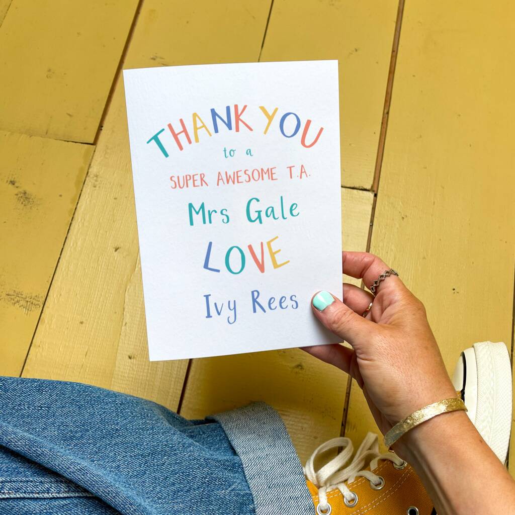 Text Reads: 'THANK YOU to a Super Awesome T.A. (Personalised Name) Love (Personalised Name)
