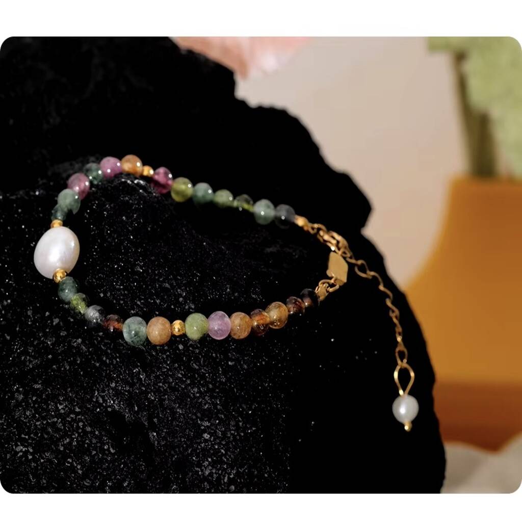 Monaco D'or Gold Pearl Ombré Tourmaline Natural Stone Gift Bracelet