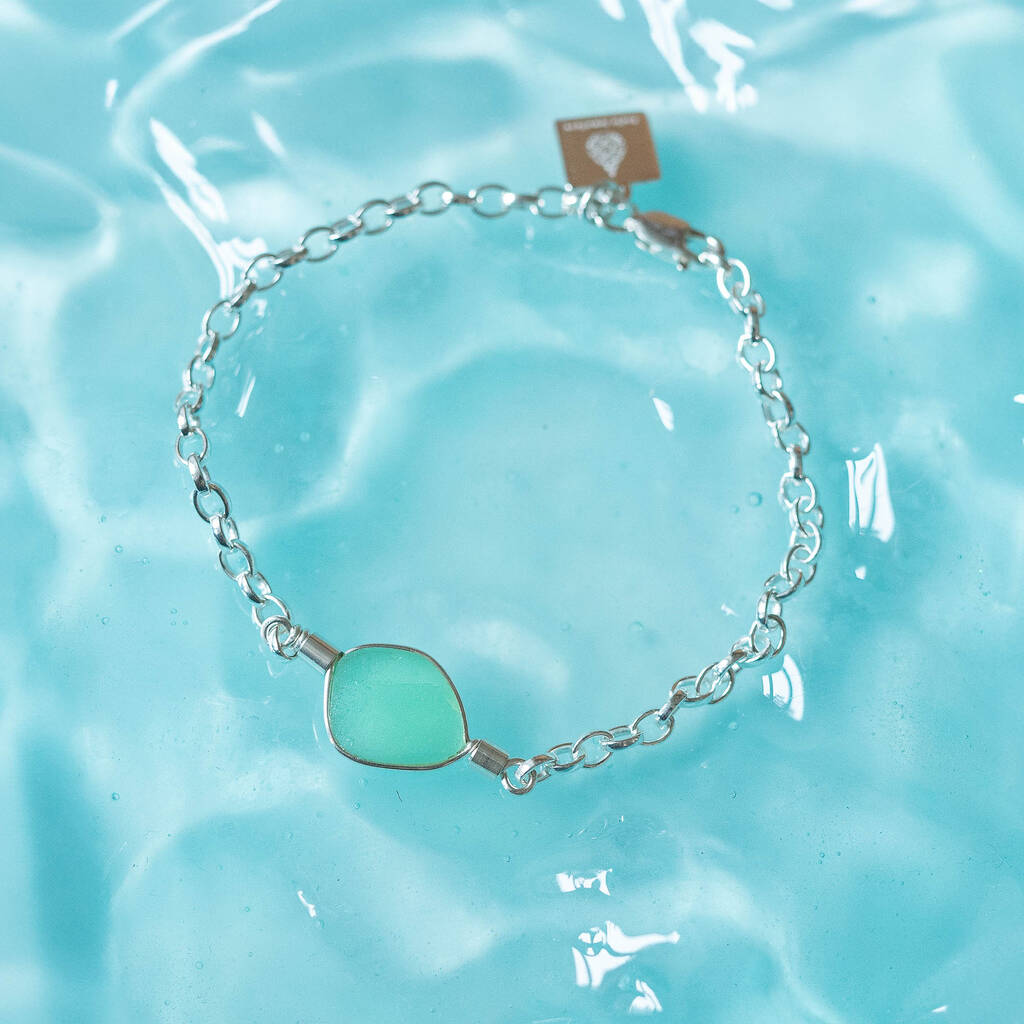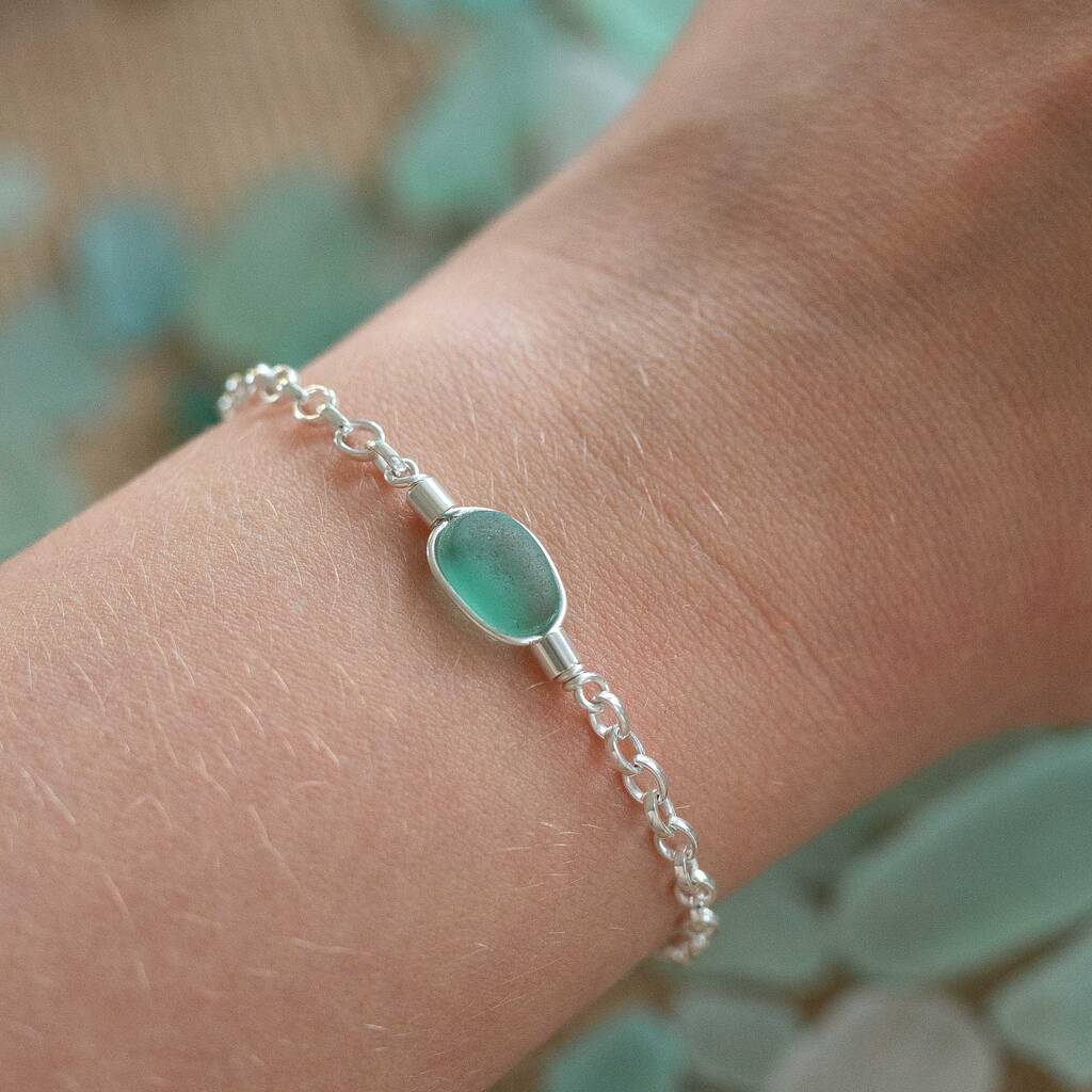 Please note, you will receive a blue sea glass bracelet however, sea glass is a product of nature & it will be slightly different in shape, size, hue & texture as pictured.