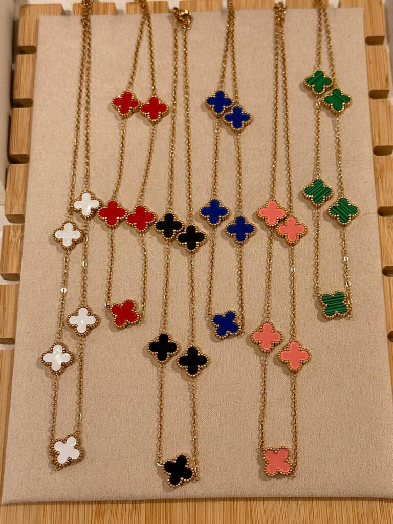 Necklace With Five Small Clovers In Rainbow Of Colours