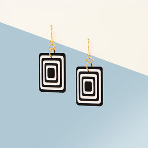 Black And White Geometric Rectangle Earrings • Gold Plated Sterling Silver Hooks