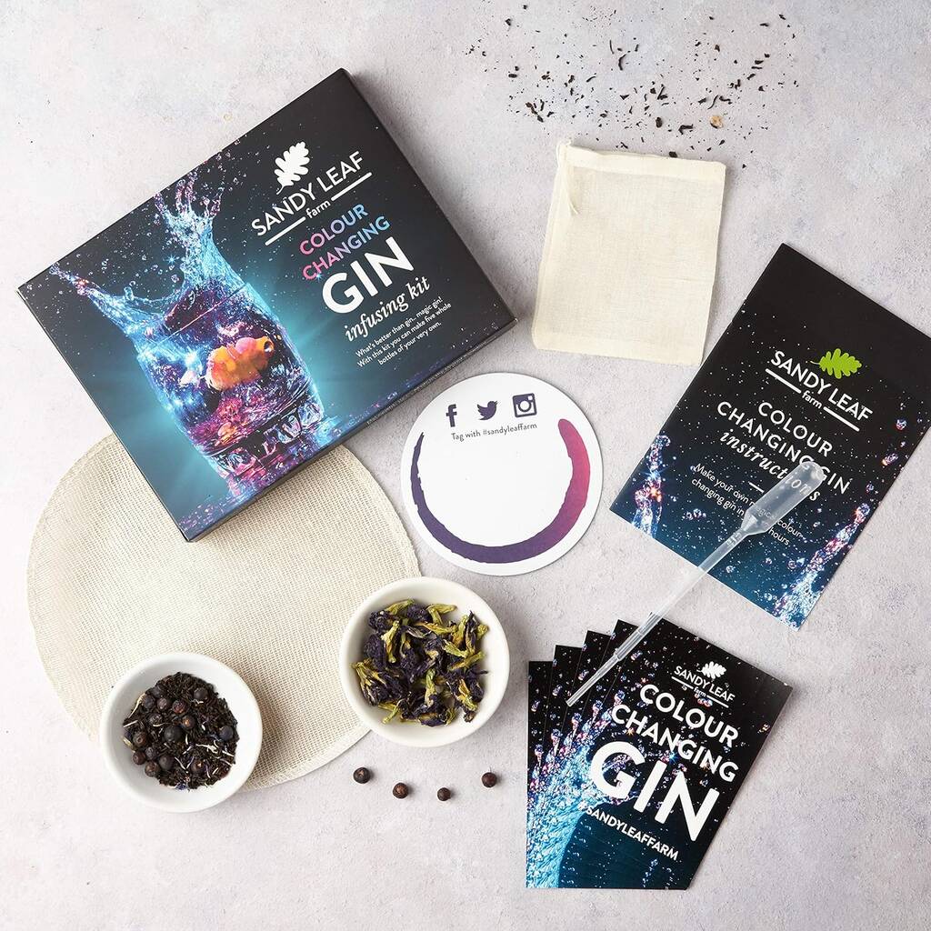 Sandy Leaf Farm Gin Making Kit – Five Bottle, Colour Changing Infusing Kits