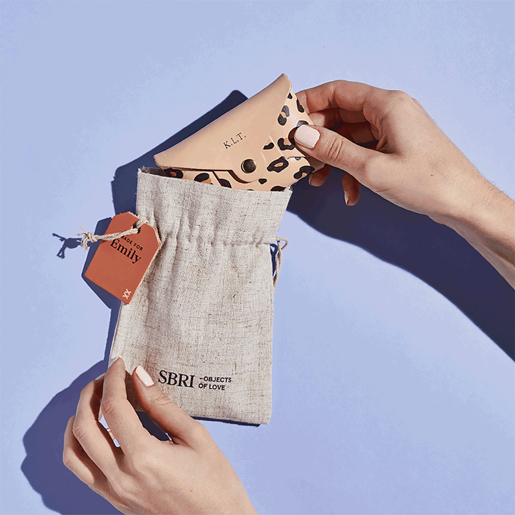 Your leopard print coin purse will arrive in a branded Sbri gift bag as standard. Make it even more special with an optional personalised gift tag cut from our gorgeous orange leather and printed with ‘Made for’ and their name. Whatever the occasion, let them know that this piece has been crafted with them in mind.