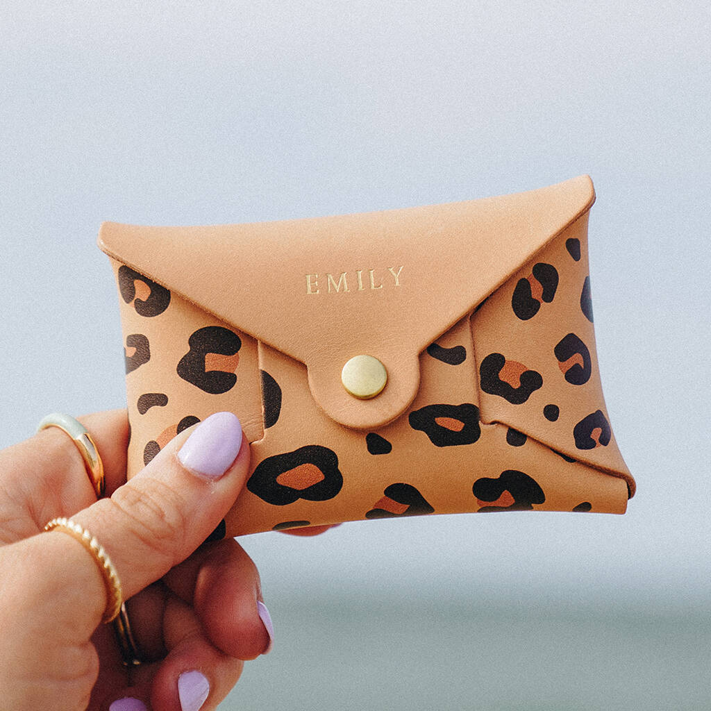 A fun leopard print leather change purse for cards and coins, personalised with your initials. It's a taste of the wild in your pocket.