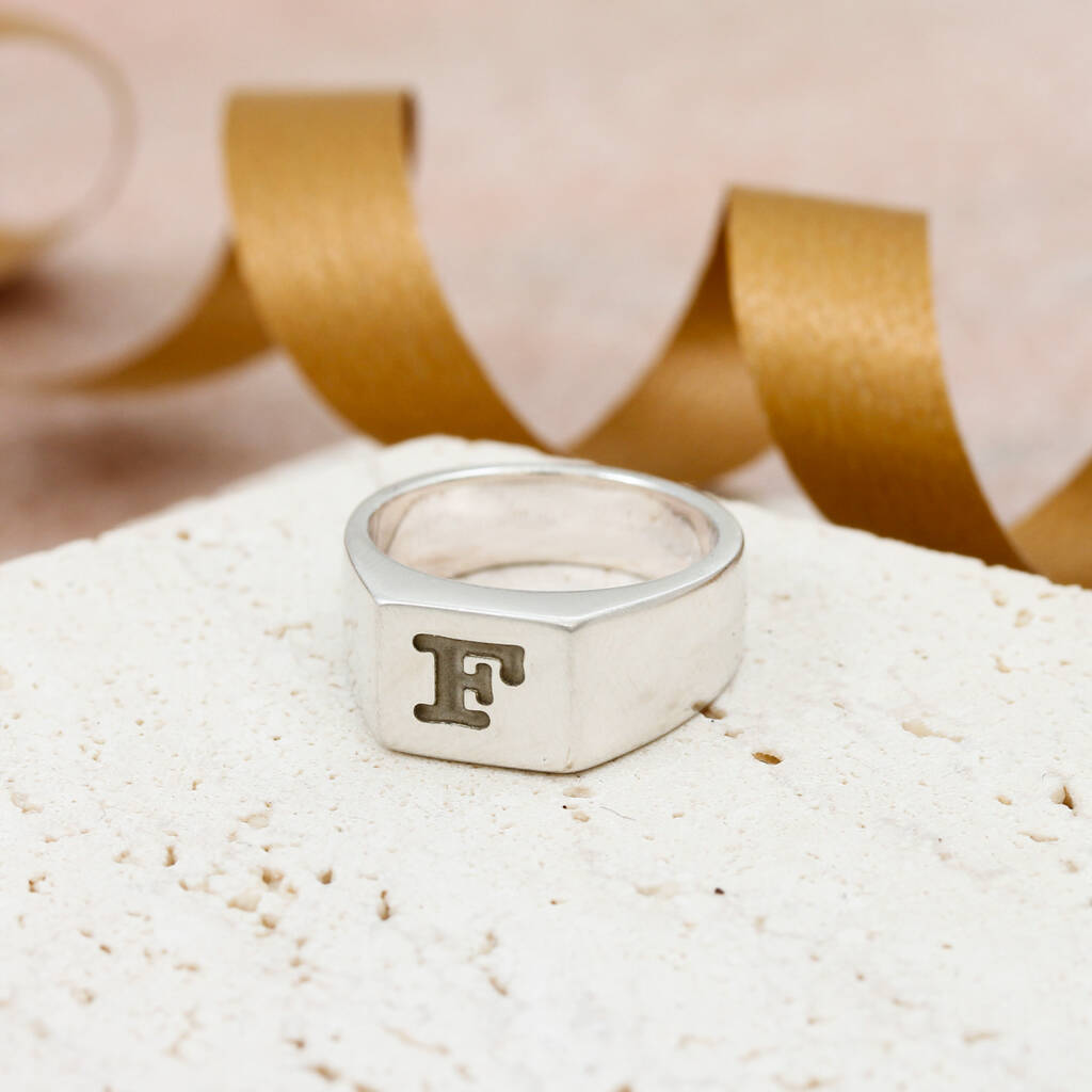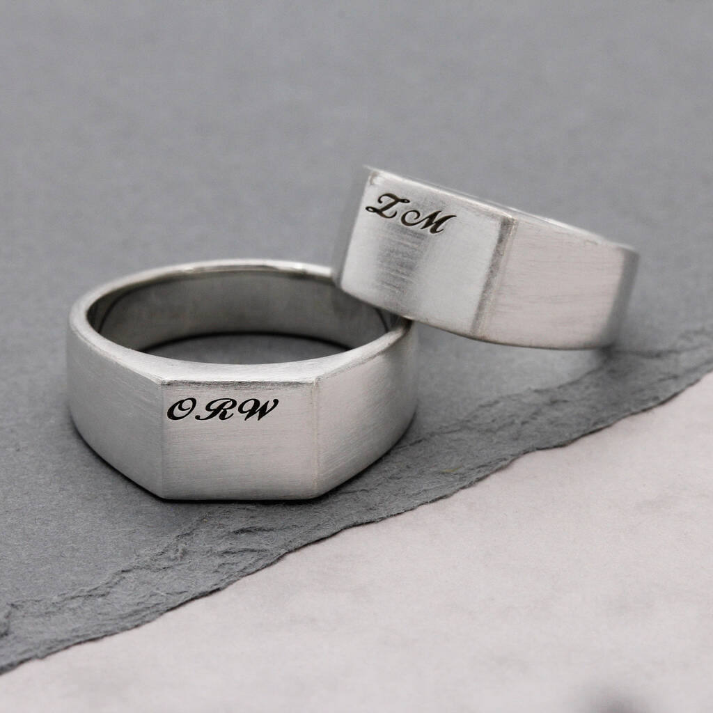 Created with bespoke engraving with your initials in a choice of a bold script font, serif font, or large central initial, this ring offers a personalised touch that truly sets it apart.
