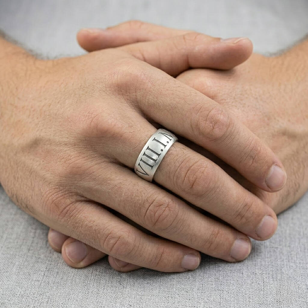 Roman Numerals 10mm Wide Chunky Silver Ring