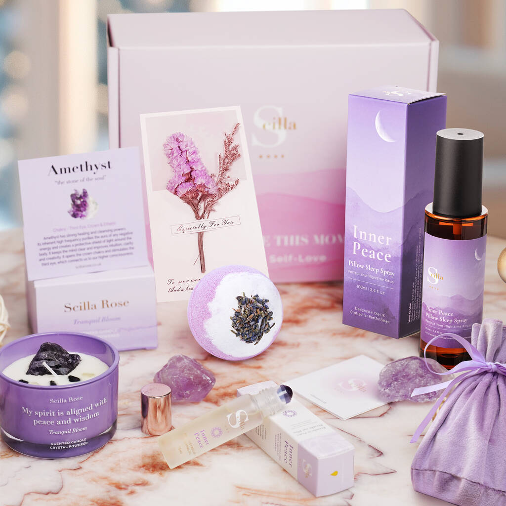 Give her the ultimate self-care experience with this luxurious Amethyst & Lavender Sleep Spa Gift Set. Thoughtfully designed for relaxation and beauty, it comes beautifully presented in a reusable keepsake box with a magical, built-in LED light.