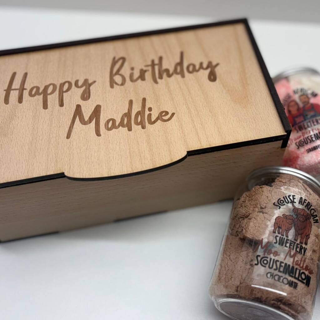 Each box is engraved to order and carefully packed by hand, creating a thoughtful gift that feels special without being overcomplicated. The wooden box is designed to be kept and reused long after the marshmallows are gone.